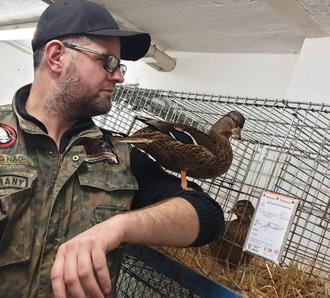 Patrick Zeidler mit seiner Zwergente wildfarbig, welche die Höchstnote "vorzüglich" erhielt