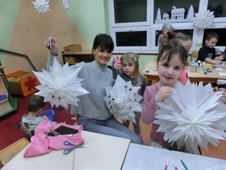 Am 9. Januar luden wir die Eltern unserer Gruppe zum Neujahrstreffen in die Kita ein. In gemütlicher Runde bei Kaffee, Tee, Obst und leckeren Keksen von der Bäckerei Bräutigam wurde nicht nur erzählt und gespielt, sondern tolle Wintersterne aus Butterbrottüten hergestellt. Die Kinder bastelten fleißig mit ihren Eltern und so entstanden viele schöne Exemplare. Der Nachmittag verging wie im Flug und alle gingen glücklich nach Hause.