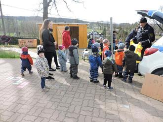 Am 26.02.24 erhielten wir im Kindergarten Besuch von der Plauener Polizei. Eine Polizistin und ein Polizist haben auf sehr anschauliche Weise den Kindern spielerisch beigebracht, worauf sie im Straßenverkehr achten müssen. Zu Beginn erhielt jedes Kind ein Puzzle mit dem Motiv eines Verkehrsschildes. Nachfolgend lernten die Kinder die Bedeutung dieser Verkehrsschilder kennen. Ebenso wurde die Bedeutung der Ampel und ihrer Farben mithilfe eines Arbeitsblattes erläutert. Alle waren sehr konzentriert bei der Arbeit und nahmen mit Begeisterung an diesem spannenden Angebot teil. Nach dieser theoretischen Einführung hatten die Vorschüler nun die Möglichkeit, während eines gemeinsamen Spazierganges aktiv zu werden. Dabei wurde fleißig geübt, wie man die Straße korrekt überquert und was dabei genau zu beachten ist. Zum Abschluss gab es ein ganz besonderes Highlight. Die Polizistin zeigte uns ausführlich das Polizeiauto und erklärte uns dabei jede einzelne Ausstattung und ihre Funktion. Von den blinkenden Lichtern bis hin zu den verschiedenen Schaltern und Kommunikationsgeräten - nichts blieb unerklärt. Anschließend durfte sich jedes Kind einmal in das Auto setzen, um einen Blick aus der Perspektive eines Polizisten zu bekommen. Es war ein aufregendes und lehrreiches Erlebnis mit viel Spiel und Spaß für alle.