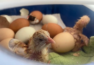 Tierische Osterüberraschung im Kindergarten Grashüpfer. Am Osterdienstag wurde es im Kindergarten richtig lebendig. Aus 24 Eiern schlüpften 11 quirlige Küken- und die Kinder waren kaum noch zu bremsen vor Freude!