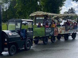 Am Ende der Schnitzeljagd wurden die Kinder von der Bimmelbahn aus Theuma überrascht und man dachte, das diese uns zum Zuckertütenbaum bringt. Die lustige Fahrt endete wieder in der Kita, wo die Kinder nun endlich von ihren Zuckertüten überrascht wurden. Die Freude war riesig.