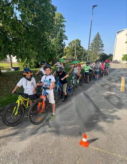 Am Donnertag, den 14.08.25 war Herr Weiß vom ADAC wie jedes Jahr wieder bei uns an der Talsperrenschule zu Gast. Bei strahlendem Sonnenschein wurde ein anspruchsvoller Parcours für unsere zweite, dritte und vierte Klasse aufgebaut. Die Kinder kamen aber nicht nur durch die Sonne ins Schwitzen. Hand raushalten, Schulterblick, über ein Brett balancieren, im Kreis fahren und dabei die Hand raushalten und vieles mehr musste trainiert werden. Die Kinder haben das alles super gemeistert und die Besten aus jeder Klasse wurden am Ende geehrt.