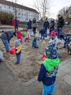 Für die Kinder wurden Spiele angeboten, wie Wettlauf mit einer Schubkarre voller Kartoffeln, Kartoffellauf oder das Ausbuddeln versteckter Kartoffeln im Sandkasten.