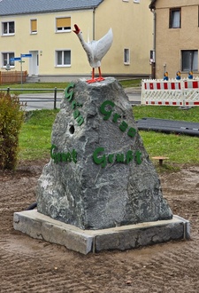 Neuer Willkommensstein für Gansgrün und macht damit seinem Namen alle Ehre