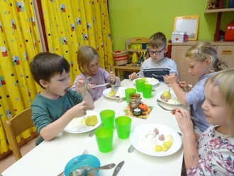 Stolz über unsere Ernte haben wir dann Pellkartoffeln mit drei verschiedenen Quark-Variationen gemeinsam zubereitet und anschließend gegessen. Die Kinder hatten viel Freude dabei und genossen diese besondere Mahlzeit. An diesem Tag hatten wir sogar tatkräftige Unterstützung von einer fleißigen Mutti. Vielen lieben Dank noch einmal an dieser Stelle.