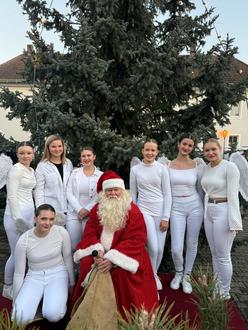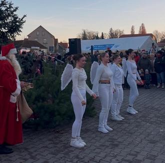 Die Tanzgruppe „Modern Art“ des Sportvereins Blau-Weiß Neschwitz begrüßten den Weihnachtmann zu seinem Auftritt vor dem Weihnachtsbaum.