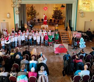 Vor der Verkostung des Riesenstollens verzauberten die Kinder der Kita und des Hortes im Saal des “Herrschaftlichen Gasthofes“ die Gäste mit dem diesjährigen Weihnachtsprogramm.