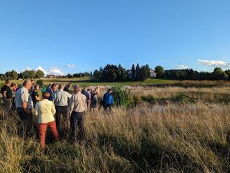 Auch die Renaturierung des Schwarzwassers wurde präsentiert. In dem aufwendigen, aber beeindruckenden Projekt wurde der natürliche Bachlauf wiederhergestellt, wodurch die Artenvielfalt gefördert wird. Frau Hunger von der Stowasserplan GmbH und Co KG beschrieb den Ausgangszustand und den etwa zweijährigen Bauverlauf anhand eindrucksvoller Bilder. Das erstaunliche Ergebnis wurde den etwa 70 Teilnehmerinnen und Teilnehmern direkt vor Ort gezeigt.