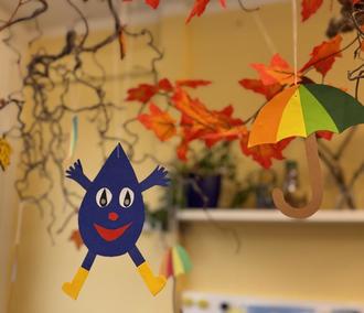 Angefangen haben wir mit Gummistiefeln und Regenschirmen. Da es sehr viel in den letzten Wochen regnete, sprachen wir viel über den Regen. Dabei half uns der Regentropfen Plock. Mit Liedern, Geschichten und Bewegungsversen konnten wir viel darüber erfahren. Zum Abschluss tanzten wir das Lied vom kleinen Plock und konnten unser Thema intensivieren.