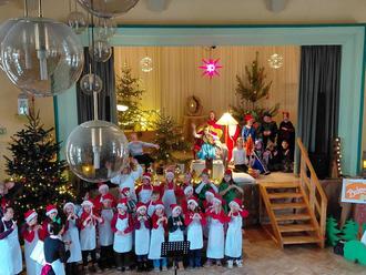 Vor der Verkostung des Riesenstollens verzauberten die Kinder der Kita und des Hortes im Saal des “Herrschaftlichen Gasthofes“ die Gäste mit dem diesjährigen Weihnachtsprogramm.