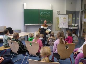 Die ABC Grundschule feierte am 21.11.2025 den Bundesweiten Vorlesetag unter dem Motto „Vorlesen spricht deine Sprache“. An diesem Tag drehte sich alles um spannende Geschichten, lustige Bücher und die Freude am Zuhören. Uns besuchte der stellvertretende Bürgermeister Herr Frank Koreng, Frau Korch sowie die Schüler Heidi, Jamie, Levi, Toni, Vincent und Matteo aus der Paulus-Schule Königswartha. Sie lasen den ABC Grundschülerinnen und -schülern Geschichten aus einer Auswahl von bunten Büchern vor.