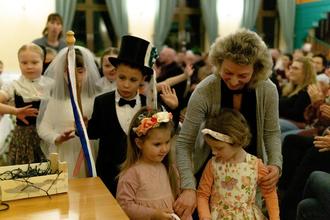 Das war eine Freude und ein „Gezwitscher“, als wir uns alle im Turnraum vor dem Frühstück trafen. So viele tolle Vogelkostüme, in Begleitung von Braut (Drossel) und Bräutigam (Amsel) sowie dem Braška. Alle wurden musikalisch vorgestellt, mit einem „Knicks“ oder einem „Diener“.