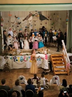 Alle Gruppen trafen sich 7:30 Uhr im Turnraum und wir eröffneten gemeinsam mit dem Lied „Und wer als ... gekommen ist, tritt ein, tritt ein, tritt ein ...“ Danach gingen wir in die Gruppen und staunten, dass die Vögel uns einen leckeren Teigvogel, gesponsert von der Schulküche Ralbitz auf die Teller legten. Nach dem Frühstück wurde ausgiebig die Vogelhochzeit in allen Gruppen und Bereichen gefeiert. Mit viel Musik und Tanz wurde sie begleitet. Am Nachmittag wurden einigen Mädchen die Tracht in katholisch sorbisch und die Neue evangelisch sorbisch angezogen. Nun konnte das große Vogelhochzeitsprogramm der Vorschulkinder auf dem Neschwitzer Saal beginnen. Der Bräutigam Linus und seine Braut Maja luden alle zu einer Winterreise mit anschließender Hochzeit ein. Der Brasca Julius eröffnete in sorbischer Sprache die Feier. Das Brautpaar übersetzte in deutsche Sprache. Das Programm beinhaltete ein kleines Theaterstück mit Frau Holle (Frau Böhme) und der Goldmarie (Frau Mielke). Wir sangen vom Schlitten fahren und dann kam der „coole“ Schneemann. Alle rockten den „Schneemann Rock’n’roll“. Danach kam die traditionelle Vogelhochzeit mit deutschen und sorbischen Liedern. Jeder konnte sein schönes gebasteltes Vogelhochzeitskostüm präsentieren. Alle Kinder haben ganz toll das Vogelhochzeitsprogramm aufgeführt. Dafür gab es zum Abschluss viel Applaus und eine Überraschung von Herrn Schuster (Bürgermeister). Der Braska konnte sich dann mit Frau Schramm persönlich von allen Gästen an der Tür verabschieden. Viele Gäste haben Taler und Scheine in den Hut gelegt. Für diese großzügige Spende bedanken wir uns recht herzlich. Wir werden einen Ausflug machen, davon werden wir im Frühsommer wieder hier im Neschwitzer Blatt berichten!