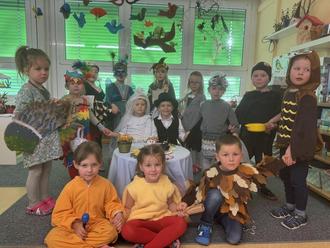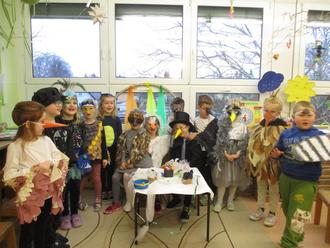 Zuerst trafen sich alle Kinder als Vögel verkleidet im Turnraum. Das war eine Freude und ein Gezwitscher, so tolle Vogelkostüme und begleitet mit wunderschöner Vogelmusik.