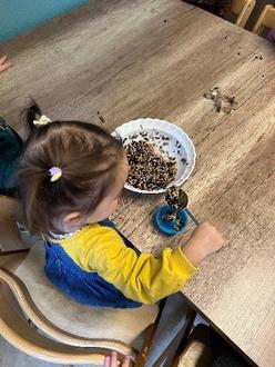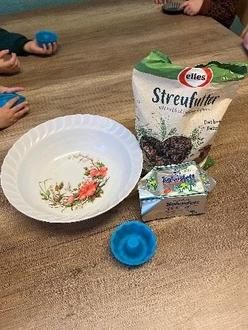 Um die heimischen Vögel vorm Überwintern zu schützen, stellten die Kinder der Tagesmütter, Vogelfutter her.