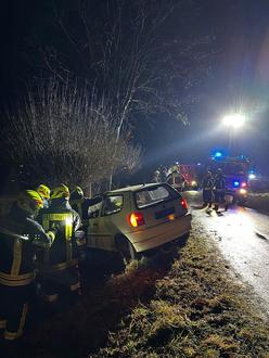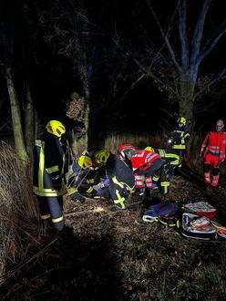Nach der Alarmierung um 17:51 Uhr rückten die Ortsfeuerwehren Neschwitz, Luga und Saritsch zur Einsatzstelle aus. Beim Eintreffen bestätigte sich das angenommene Lagebild: Ein verunfallter PKW abseits der Fahrbahn, zwei verletzte Personen, davon der Fahrer im Fahrzeug eingeklemmt. Unmittelbar wurden die Einsatzstelle abgesichert und die medizinische Erstversorgung eingeleitet. Parallel dazu bereitete die Feuerwehr die technische Rettung vor. In enger Abstimmung mit dem Rettungsdienst wurde die patientenorientierte Befreiung mittels hydraulischer Rettungsgeräte durchgeführt.