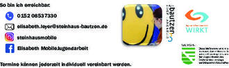 Ein herzliches Hallo an die Gemeinde Neschwitz und ihre Jugendlichen! Mein Name ist Elisabeth Leyer, ich bin Sozialarbeiterin beim Steinhaus e.V. und ab sofort Ansprechpartnerin für die Ideen, Wünsche und Projekte von euch Jugendlichen in der Gemeinde. Ich habe ein offenes Ohr für eure Themen, unterstütze bei individuellen Herausforderungen und organisiere Angebote zur Freizeitgestaltung in der Region.