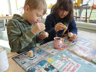 | • | Bemalen von Papier-Ostereier mit Knete |