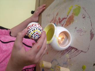Z podpěru sobudźěłaćerki Domowiny Katrin Suchec-Dźisławkoweje poradźi so, dnja 21. měrca za wobdźělnicy cyłodnjowskeho poskitka w serbšćinje na zakładnej šuli w Njeswačidle wosebitu hodźinu wuhotować. Pod nawodom hosća wóskowachu šulerki jutrowne jejka w tradicionelnej technice a mustrach. To traješe dlěje, hač běchu sej myslili, tola hordźe móžachu sej na kóncu swoje małe wuměłske wudźěłki sobu domoj wzać.