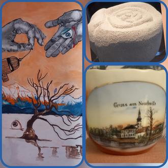 Die Neschwitzer Künstlerin Silke Milhahn zeigt Ihre zahlreichen Werke in Öl und Kreide in den Räumen der Kleinen Galerie im Barockschloss Neschwitz. Dazwischen finden sich Skulpturen aus Stein und Metall von Schülern der 8. Klasse der Paulus-Schule in Königswartha.