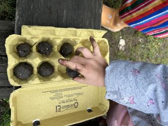 Frau Weber vom Elternrat und Frau Gutte aus der Kita fertigten heute mit einigen Kindern der Kita Samenbomben an. Das war etwas Neues und die Kinder hatten viel Freude beim Herstellen.