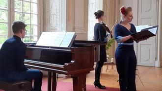 Am ersten Sonntag im Mai eröffneten die Kultur- und Heimatfreunde bei kühlem Wetter die 61. Konzertsaison ihrer Neschwitzer Schlosskonzerte. 62 Besucher lauschten den Darbietungen der Altsängerin Kerstin Auerbach, der erst 16-jährigen Violistin Greta Grötzschel und des Pianisten Kaleb Grötzschel (18 Jahre). Sie boten Arietten von Johann Strauss und Gaetano Donizetti sowie Kunstlieder von Richard Strauss und Richard Wagner. Kleine Texte Rainer Maria Rilkes, Christian Morgensterns und William Shakespeares rundeten das Konzert ab. In der Pause und nach dem Konzert versorgte Herr Härtel vom Herrschaftlichen Gasthof mit seiner Mitarbeiterin, Künstler und Konzertbesucher mit Kuchen und Getränken. Sie übernahmen dies erstmalig, wofür sich der Verein ausdrücklich bedankt.