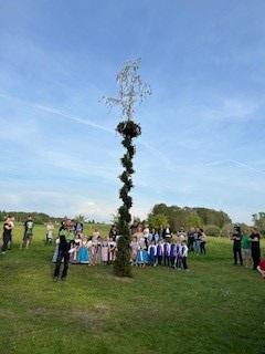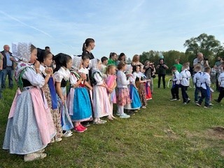 Unter diesem Motto tanzten die Vorschulkinder unseres Kinderhauses „Max & Moritz“ in Luga ihre eingeübten Maitänze. Die Mädchen trugen nicht nur die traditionelle sorbischen kath. Tracht, sondern auch unsere neuen sorbisch evangelischen Trachten. Mit Hilfe einer knapp 70 Prozentigen Förderung der Sorbischen Stiftung konnten neue Trachten angeschafft werden. Die restlichen Gelder wurden von Spenden, unter anderen auch vom letzten Maibaumwerfen in Luga 2023 finanziert.