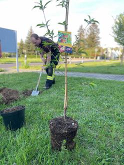Diese Herausforderung haben wir natürlich angenommen. Auf unserem Gelände wurden drei Obstbäume gepflanzt, die künftig unseren Platz verschönern und ein Stück Feuerwehrtradition weitertragen.