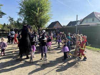 Vielen lieben Dank an alle Eltern für die tollen Kostüme und die liebevoll gestalteten Hexenbesen. Danke auch an Frau Wauer, die mit der Vorschulgruppe eine Hexe bastelte, Herrn Sachße für die Feuerschale und die Feuerwehr für die Begleitung am Vormittag.