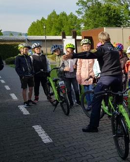 Danke an die Jugendverkehrsschule und die Bürgerpolizisten Frau Wünsche und Herr Zschornack, die uns am 11. und 12. Mai praktisch im Radfahren ausbildeten. Wir waren sehr gute Schüler, meinten sie. Wenn die Anspannung doch einmal zu groß wurde, führte Herr Zschornack mit uns sportliche Übungen durch. Das hat sehr viel Spaß gemacht und dabei geholfen, dass alle die praktische Prüfung bestanden haben. Frau Büttner und Frau Blümel hielten unsere Fahrten in Fotos fest. Am coolsten war der Moment, als uns Herr Zschornack seine Polizistenausrüstung zeigte und erklärte.