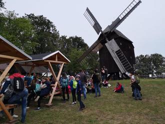 Klassen 3 und 4 wanderten zur Bockwindmühle nach Luga und erhielten dort eine Führung in der Mühle und im Schafrichterhaus.