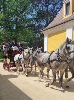 Am letzten Samstag im Juni empfing der Schlosspark Neschwitz mehrere historische Kutschengespanne bei schönstem Sommerwetter.