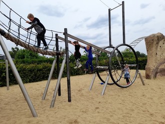Nach dem leckeren Essen dachte noch keiner an den Heimweg. Denn die Kinder wussten: Heute machen wir keine Mittagsruhe in der Kita. Nein – es ging auf den Spielplatz. Auch da gab es vieles neues zu entdecken und auszuprobieren. Der ein oder andere wurde dabei auch mutig und überwand seine Angst beim Klettern.
