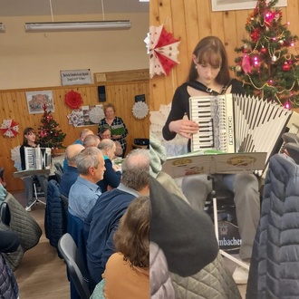 Nun wurde bei Akkordeonklängen, vorgetragen von Maria, einer Schülerin der Musikschule Fröhlich, der Raum mit weihnachtlicher Musik gefüllt. Im Anschluss daran gab es sogar noch ganz zur Überraschung aller eine Live-Performance über den „Weißen Winterwald“. Diese wurde mit viel Beifall belohnt.