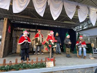 Dennoch herrschte zuweilen große Aufregung, da sich eine illustre Gesellschaft die Ehre gab. Da tummelten sich Schneeweißchen und Rosenrot, Hase und Igel, Adler und Bär, Max und Moritz sowie der Zwerg und zauberten ein aufgepepptes, ziemlich verstricktes Grimmsches Märchen auf die Bühne. Ein wunderbares Theaterspiel und Jung und Alt gefiel`s! Dem stand unser Kinderensemble, bestehend aus den sechs- bis zwölfjährigen Neuhausener Grundschülern, in nichts nach. Sie boten dem Publikum ein herzerfrischendes Programm, was mit tosendem Applaus honoriert wurde. Zu einem Weihnachtsmarkt gehören selbstverständlich traditionell Glühwein, süße Leckereien sowie Deftiges vom Grill und aus dem Suppentopf. All das fand reißend Absatz, insbesondere die superleckeren Quarkspitzen. Ebenso großer Beliebtheit erfreute sich unser mit viel Liebe und Können Handgestricktes. Manch Püppchen oder Schneemann aus Wolle lag mit Sicherheit unterm Weihnachtsbaum neben den coolen Socken für Papa. Ein Highlight, auf das vor allem unsere Jüngsten gespannt warteten, war der Besuch des Weihnachtsmanns, der in Begleitung seiner Engel mit der festlich geschmückten Kutsche in den Schlosspark kam und an die aufgeregte Kinderschar Geschenke verteilte.