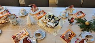 Liebevoll gedeckte Tische und weihnachtlicher Schmuck sorgten von Beginn an für eine warme und einladende Stimmung. Der Weihnachtsmann hatte für jeden eine Kleinigkeit auf und neben den Teller gelegt.