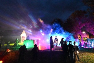 In Groß Döbbern waren wieder die Geister los und das komplette Areal der Pfarrhauswiese verwandelte sich für einen Abend in eine nebelige Grusellandschaft. Der "Meister" eröffnete in einem schaurigen Spektakel die Veranstaltung und nach dem Rundgang durchs Dorf konnten die verkleideten Gäste selbst entscheiden, ob sie bei Licht und Nebel auf der Strohburg toben, die Moorlandschaft entdecken, bei der Silentdisko lautstark singend mit Kopfhörern tanzen, leuchtstarke Zauberbilder selbst kreieren, sich die Zukunft vorhersagen lassen und einen Zaubertrank probieren wollten oder in der Schwarzen Küche allerlei Hexenkunst bewundern oder sich bei den Voodoo-Hexen etwas über Voodoo-Zauber berichten lassen wollten. Draußen loderte das Feuer und bei hausgemachter Kürbissuppe konnte man sich stärken. Ein Dankeschön an alle fleißigen Helferlein, die bastelten, köchelten, zauberten, organisierten, schleppten und dabei waren.