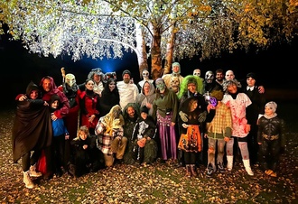 Schließlich erreichte man den Ausgang, der einen beruhigenden Blick auf das friedliche Fest mit den Kindern am Lagerfeuer und den vielen leuchtenden Kürbissen bot. Nach einem tiefen Durchatmen gingen die Gedanken nochmal zurück zu diesem erstaunlichen Projekt. Die Eindrücke aus der Gruselstrecke nahm man mit in den weiteren unterhaltsamen Abend. Die Eltern in der Muttigruppe haben tagelange Arbeit in den Aufbau der Gruselstrecke gesteckt. Hochgestellte und mit Folien und Planen überdeckte Paletten gaben dem Parcours den Rahmen. Nebelmaschinen und Lichter wurden installiert, um gespenstische Atmosphäre zu schaffen. Ein riesiger und beeindruckender Aufwand, der am Ende von einer überwältigenden Resonanz belohnt wurde. Wieder zeigten die Haasower, dass man Feste für alle Generationen zu einem unvergesslichen Erlebnis vorbereiten und umsetzen kann. Vielen Dank an alle Beteiligten und Helfer der Haasower Muttigruppe.