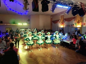 Stimmungsvoll und bunt wurde der Einzug aller Mitwirkenden mit viel Konfetti über die Bühne gebracht. Das Prinzenpaar stellte sich vor. Karsten führte souverän in gewohnter Art und Weise durchs Programm. Mit Showtänzen der großen und kleinen Funken wurde gestartet und dann vom Programm der Prinzengarde und den Showgirls abgerundet. Auch die Mitglieder des Elferrats zeigten ihr Können in ständig wechselnden Kostümen. Beim Auftritt des Männerballetts kam die Stimmung auf ihren Höhepunkt und es brodelte im Saal.
