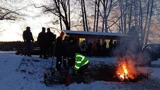 Bereits am 20. Januar folgte die erste traditionelle Veranstaltung aus unserem Kalender: Das Weihnachtsbaumverbrennen. Als die Gablenzer und Gablenzerinnen um 16 Uhr an den Dorfteich in Gablenz kamen, brannte bereits das Feuer. Im Nu hatte sich ein Berg an Weihnachtsbäumen angesammelt, der für alle Gäste am gesamten Nachmittag und Abend für wohlige Wärme sorgte. Mit Glühwein, Tee und Bratwurst konnten sich alle Teilnehmenden auch von innen gut wärmen und gleichzeitig den kleinen Hunger und den Durst stillen.