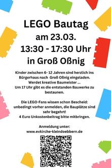 Lego-Bautag für Kinder von 6 - 12 Jahre am Samstag, 23. März von 13.30 – 17.30 Uhr im Bürgerhaus Groß Oßnig