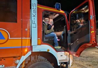 Die Großen hatten viel zu erzählen, während die Kleinen mit viel Interesse das große Feuerwehrauto begutachteten.