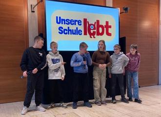 Besonders stolz sind wir auf die Teilnahme am Kreativwettbewerb "Unsere Schule lebt" des Landes Brandenburg. Die Schüler präsentierten ihren Song live bei der Preisverleihung in Potsdam und gewannen dabei ein Preisgeld von 1.000 Euro!