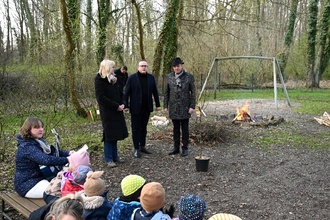 Bei einem Rundgang durch die Räumlichkeiten in Kahsel ließ sich Julian Brüning das Prinzip der Montessori-Pädagogik erklären und in Komptendorf kam er gerade recht zum Osterfeuer.