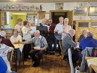 Danach wurde im Sportlerheim gesungen – unsere erste Probe für den Auftritt der Senioren zum großen Dorffest am 19. Juli auf dem Sportplatz.