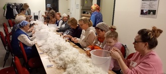 Katharina Schulz hat eingeladen zum Aufleben der alten Tradition des Federnschleißens. Wir trafen uns am 24. März mit Kittelschürze und Kopftuch im Dorfgemeinschaftshaus und da war schon alles vorbereitet. Unmengen Federn von Gänsen lagen auf den Tischen.