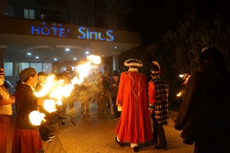 Am Sonntag hieß es für uns, bereits am Vormittag aufzutreten. Dies sollte anlässlich des Kinderumzuges geschehen. Heute war der Auftritte nicht vor dem Eintreffen der Gruppen sondern erst danach. Nach vielen wunderbaren Bildern gab es eine Abschlussparty mit Musik auf dem Platz. Hier spielten wir mit den Kindern und dem Feuer.