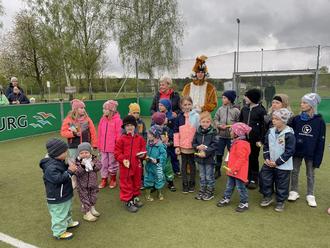Ein flottes Tänzchen aller Kinder mit der Ortsvorsteherin lockte den fleißigen Gesellen aus seinem Versteck, natürlich beladen mit einer kleinen süßen Überraschung für alle Kinder. Beim Eierlaufen und Eierwallern konnten die Kleinen ihr Geschick testen, oder einfach auch nur ein buntes Osterei probieren. Gemeinsam ging es dann zum Platz am Osterfeuer, wo schon ein kleines Feuer auf unsere Kinder wartete. Das alles machte Appetit. Der Jugendclub unseres Ortes sorgte dafür, dass keiner verhungern oder verdursten musste. Und hier haben sie sich selbst übertroffen. Vielfältige Getränke, Würstchen, frische Schmalzschnitten und zur großen Freude unserer kleinen Laubsdorfer gab es Nudeln mit Tomatensoße.