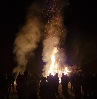 Gegen Abend füllte sich der Platz und um 21.00 Uhr wurde dann das Osterfeuer entfacht. Das Lodern der Flammen in den abendlichen Himmel, Gespräche mit den Nachbarn und ein gemeinsames Gläschen machen das Osterfeuer immer wieder zu einem besonderen Erlebnis.