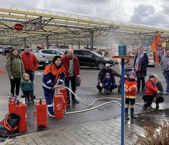 Die Jugendfeuerwehr zeigte den kleinen Besuchern erst den Umgang mit dem Strahlrohr, an dem sie sich dann selbst ausprobieren konnten. Dabei zielten sie auf Dosen oder auf ein Brandhaus. Für das erfolgreiche „Löschen“ gab es auch Preise, welche vom Kreisfeuerwehrverband gesponsert wurden.